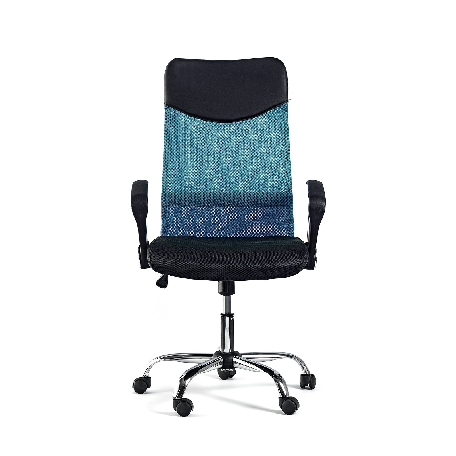 Директорски стол Monti HB, дамаска, екокожа и меш, черна седалка, тюркоазена облегалка